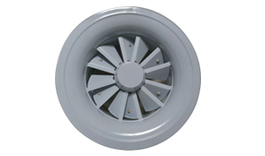 旋流风口是空调系统中的一个送风工具。在空调通风系统中可用作大风量,大温差送风以减少风口数量,安装在天花板或顶棚上,可用于3米以内低空间,也可用二种高度大面积送风,高度甚至可达10米以上。